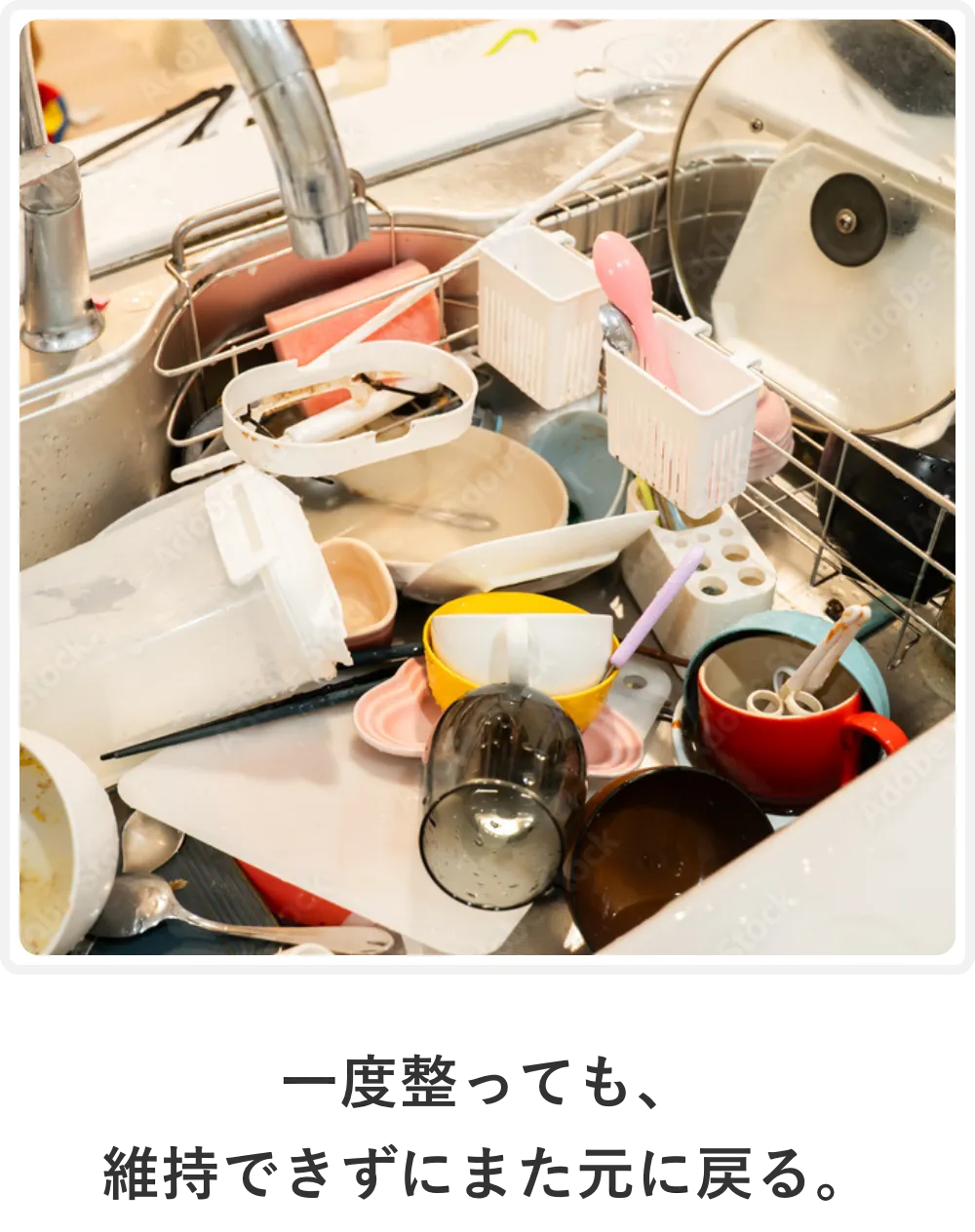 そもそも、一度片付いても、綺麗な状態をキープし続けることができず、